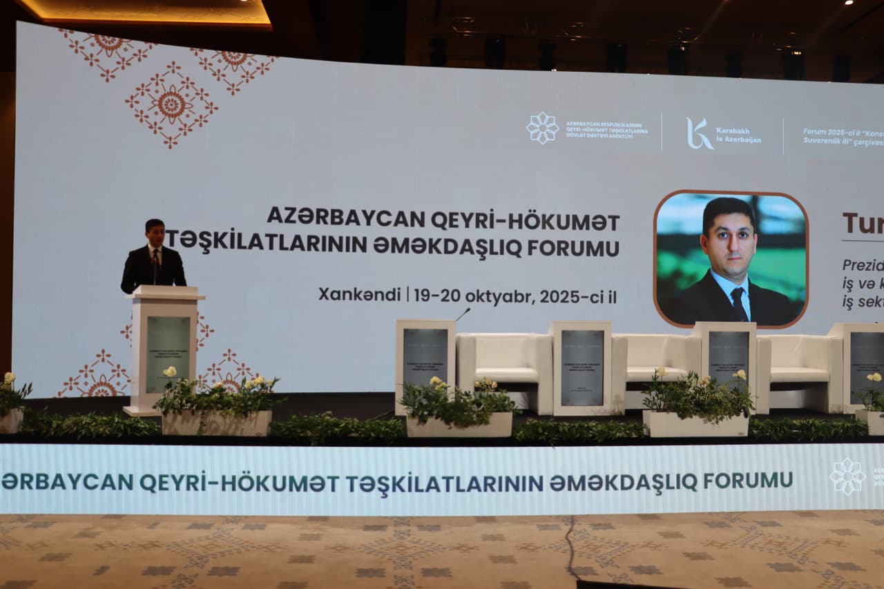 Oktyabrın 20-də Xankəndi şəhərində Qeyri-Hökumət Təşkilatlarının Əməkdaşlıq Forumu işinə başlayıb. Xankəndi şəhərində, Ağdərə və Xocalı rayonlarında Bərpa, Tikinti və İdarəetmə Xidmətinin ictimaiyyətlə əlaqələr şöbəsindən verilən məlumata görə, forumda çıxış edən Xankəndi şəhərində, Ağdərə və Xocalı rayonlarında Prezidentin xüsusi nümayəndəsi Elçin Yusubov ölkəmizin son illərdə keçdiyi mühüm tarixi mərhələlərdən, dövlətimizin əldə etdiyi uğurlardan və bu prosesdə vətəndaş cəmiyyəti institutlarının rolundan bəhs edib.Elçin Yusubov qeyd edib ki, Ali Baş Komandanın rəhbərliyi ilə aparılmış 44 günlük Vətən müharibəsi və 2023-cü ilin antiterror tədbirləri nəticəsində Azərbaycan öz konstitusiya quruluşunu tam bərpa edib, suveren hüquqlarını ölkənin bütün ərazisində təmin edib. Onun sözlərinə görə, bu, təkcə hərbi və siyasi qələbə deyil, həm də ədalətin, qanunun və Konstitusiyanın prinsiplərinin bərpasıdır.