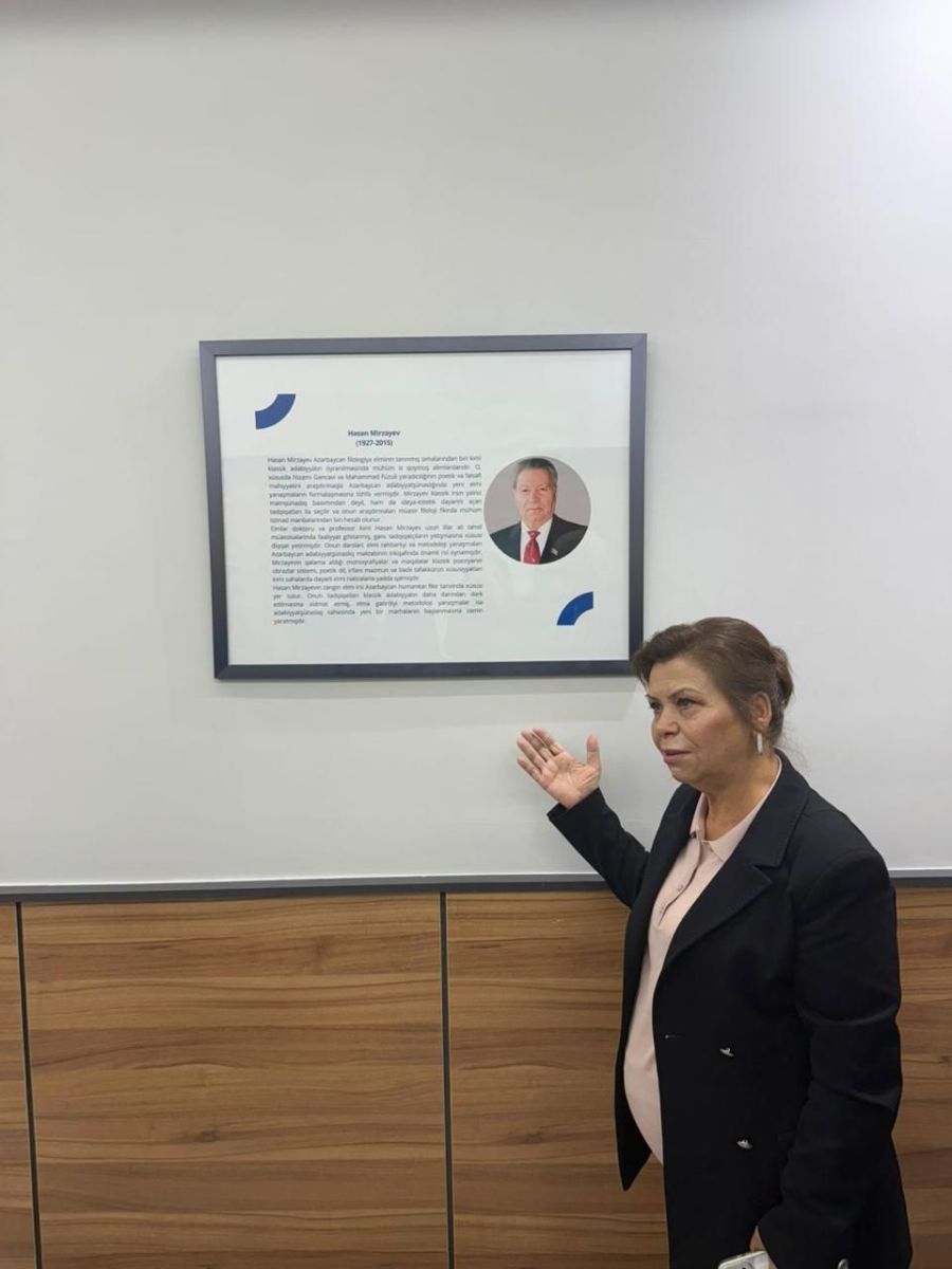 Tədbbirin sonunda A.Nağıyev bildirib ki, bu gün filologiya elmləri doktoru, tanınmış dilçi-türkoloq, Azərbaycan Respublikasının Əməkdar Elm xadimi Həsən İbrahim oğlu Mirzəyevin doğum gününə təsadüf edir. Rektor əlavə edib ki, görkəmli alimlərin xatirəsinin əbədiləşdirilməsi, onların həyat və fəaliyyətinin gənc nəslə tanıdılması universitetin əsas məqsədlərindən biridir. Bu məqsədlə tədbirdən sonra professorun zəngin elmi fəaliyyətini və həyat yolunu əks etdirən məlumat xarakterli xatirə lövhəsi universitetin foyesində asılıb.