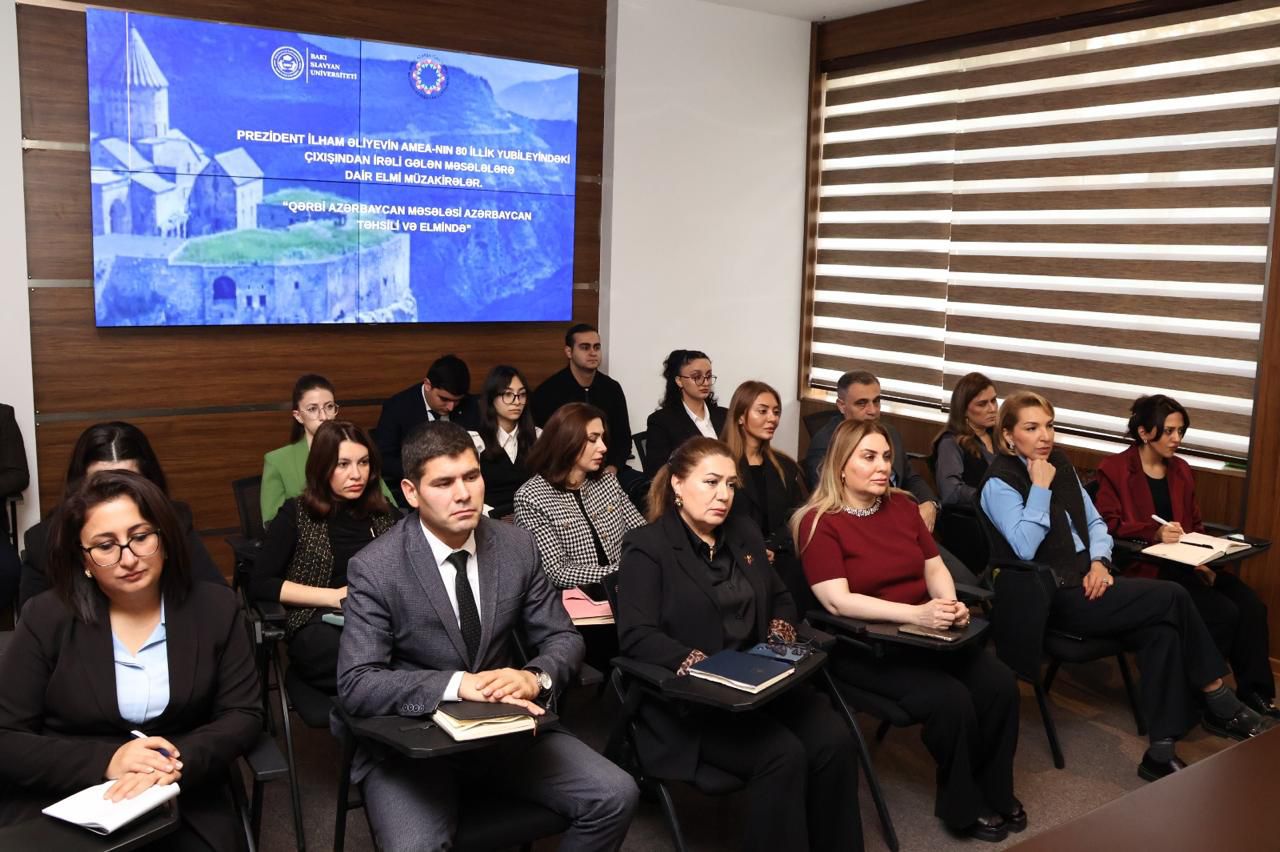Noyabrın 26-da Bakı Slavyan Universitetində (BSU) Azərbaycan Respublikasının Prezidenti İlham Əliyevin Azərbaycan Milli Elmlər Akademiyasının (AMEA) 80 illik yubileyi münasibətilə etdiyi çıxışda irəli sürdüyü məsələlərə dair elmi müzakirələr aparılıb və “Qərbi Azərbaycan məsələsi Azərbaycan təhsili və elmində” mövzusunda dəyirmi masa keçirilib.