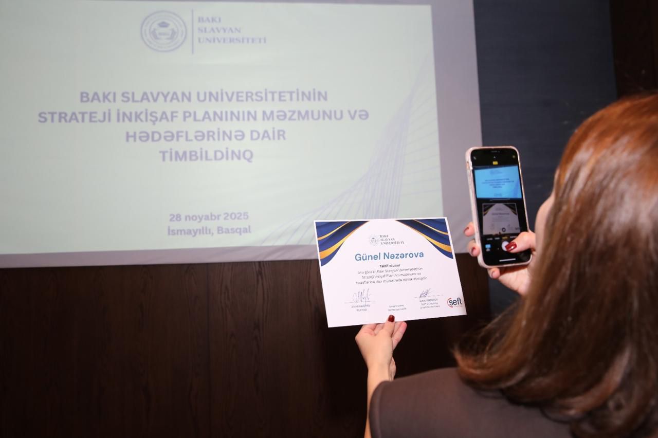 Noyabrın 28-də Bakı Slavyan Universitetinin (BSU) İsmayıllı rayonunda növbəti Strateji İnkişaf Planının (SİP) məzmunu və hədəflərinə dair növbəti timbildinq təşkil olunub. Tədbirdə BSU-nun rektoru Anar Nağıyev, professor-müəllim heyəti və tələbələr iştirak ediblər.
